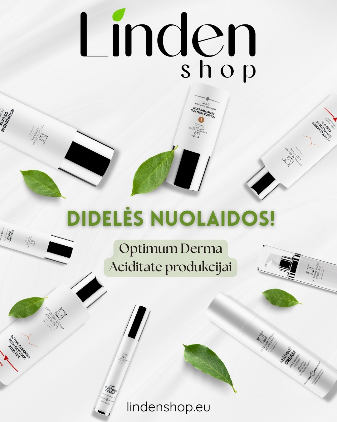 Šiame projekte kūriau „Linden shop“ nuolaidų kampanijos reklaminį vizualą, skirtą „Optimum Derma Aciditate“ produkcijai. Pagrindinis tikslas buvo aiškiai ir estetiškai pristatyti specialų pasiūlymą, išlaikant švarų ir profesionalų įvaizdį.